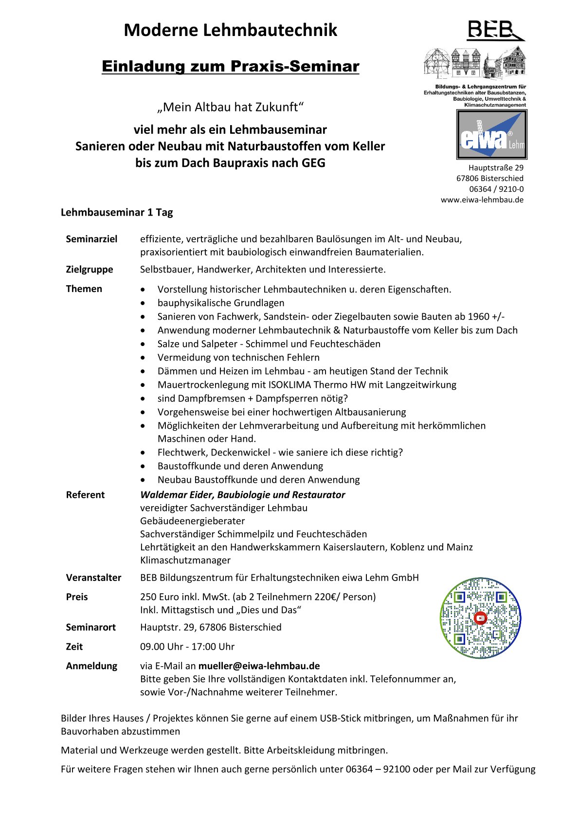 Kontakt: w.eider@eiwa-lehmbau.de – Tel. 06364/92 10-0